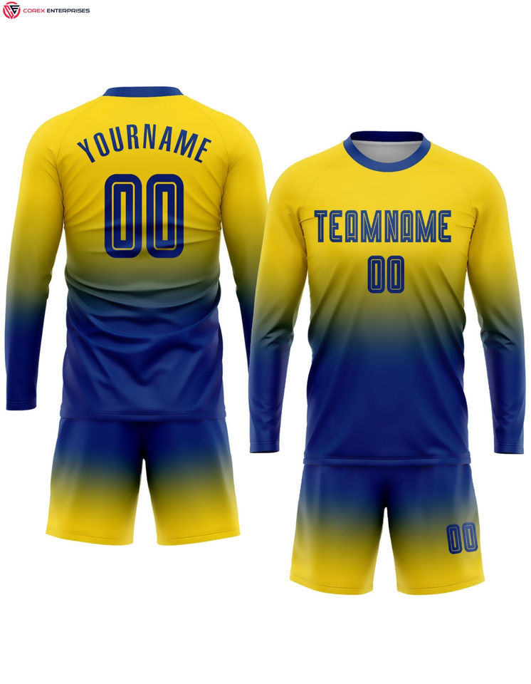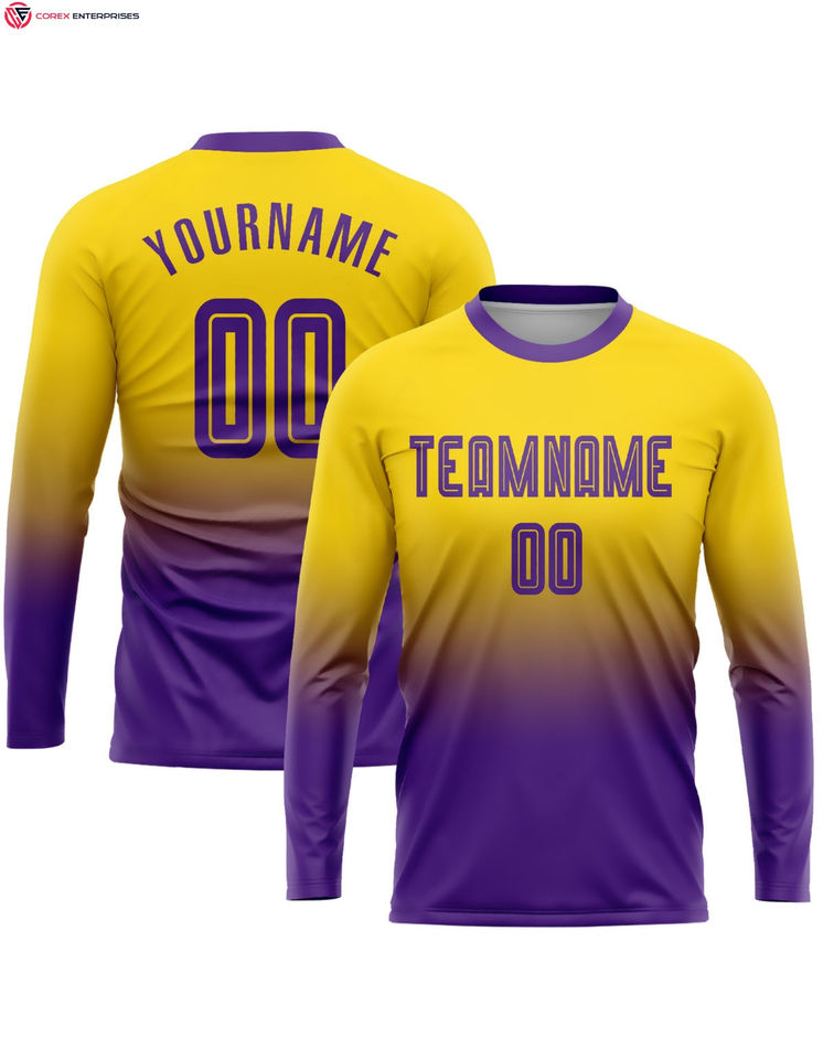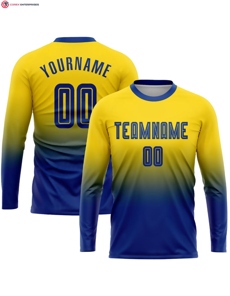 เสื้อฟุตบอลแขนยาวผ้าโพลีเอสเตอร์สีทองพิมพ์ลายสี100%