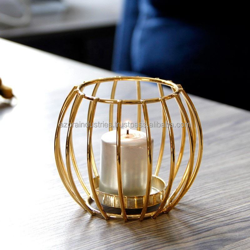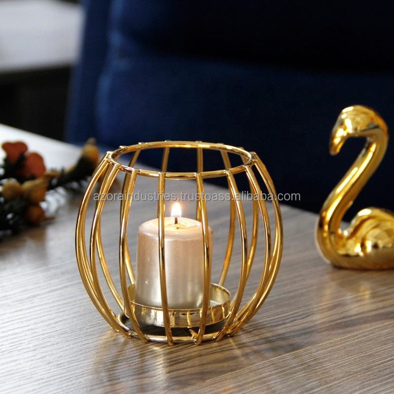 เชิงเทียนลวดกลวงสีทองตกแต่งบ้านเชิงเทียนงานฝีมือเหล็กโลหะยุโรปตามสั่ง