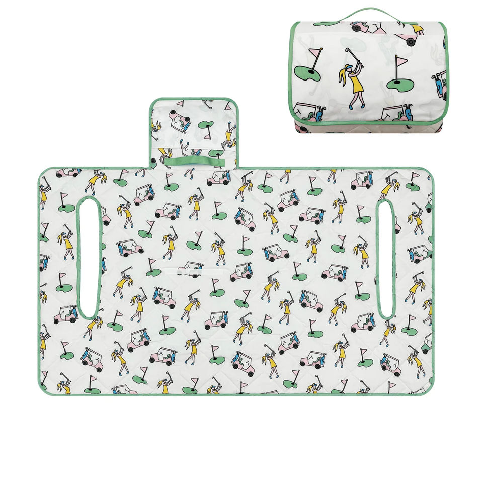 ที่คลุมที่นั่งรถกอล์ฟแบบปรับแต่งได้ผ้าคลุมที่นั่งรถกอล์ฟผ้าสำหรับปิคนิคในกระเป๋าถือของตัวเองพร้อมกระเป๋าขนาดเล็กที่สะดวก