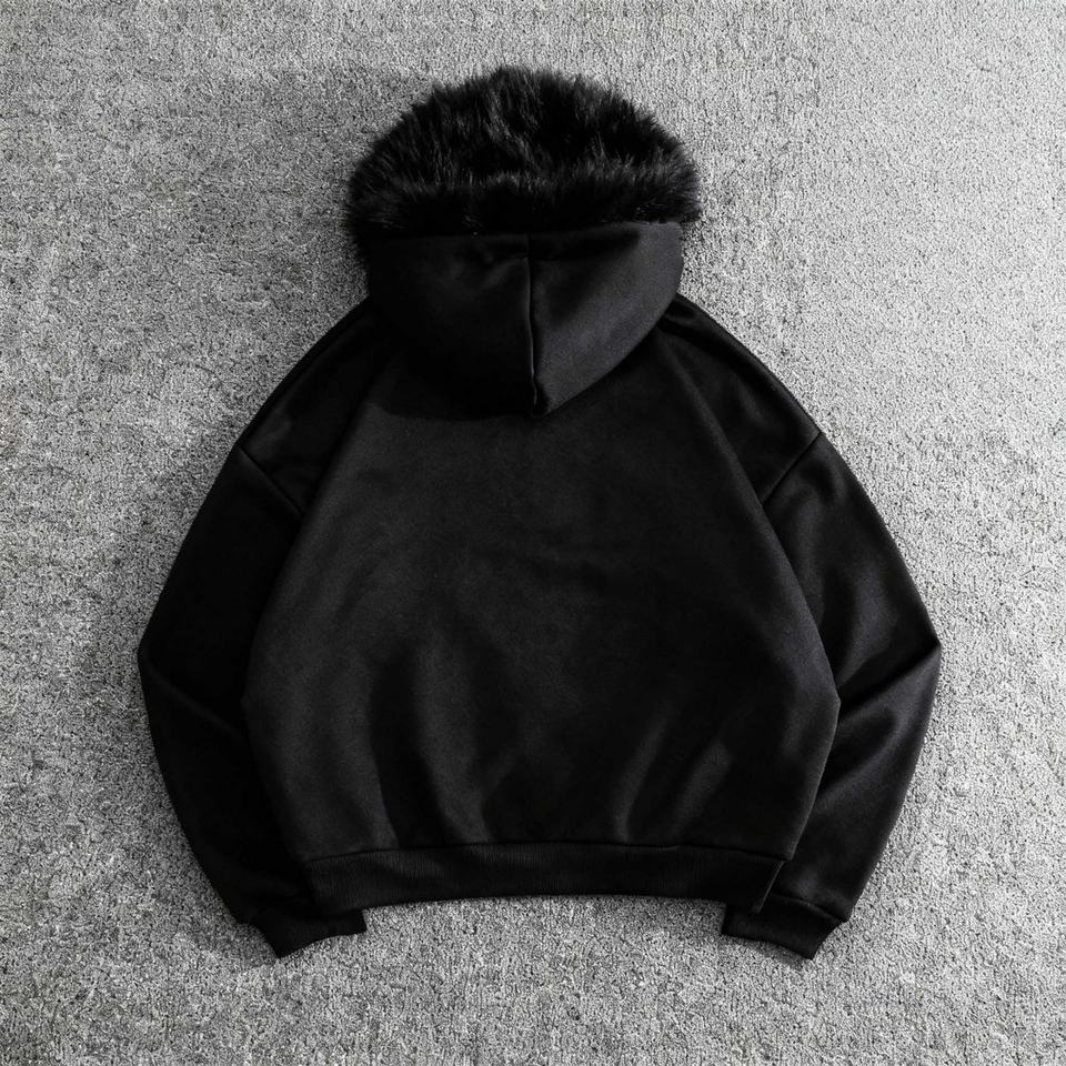 หมายเลขรุ่น:CUS250102- Custom Fur Collar Oversized Hoodie