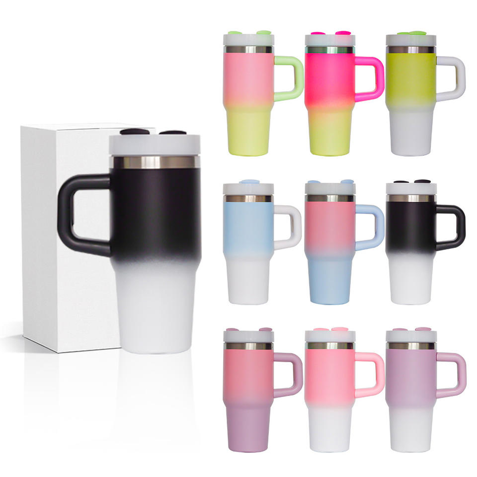 แก้วเก็บความร้อนสแตนเลส14ออนซ์พร้อมที่จับสีไล่ระดับสีผนังสองชั้นแบบกำหนดเอง