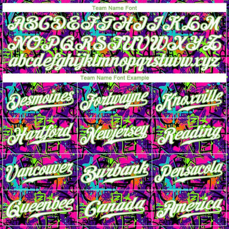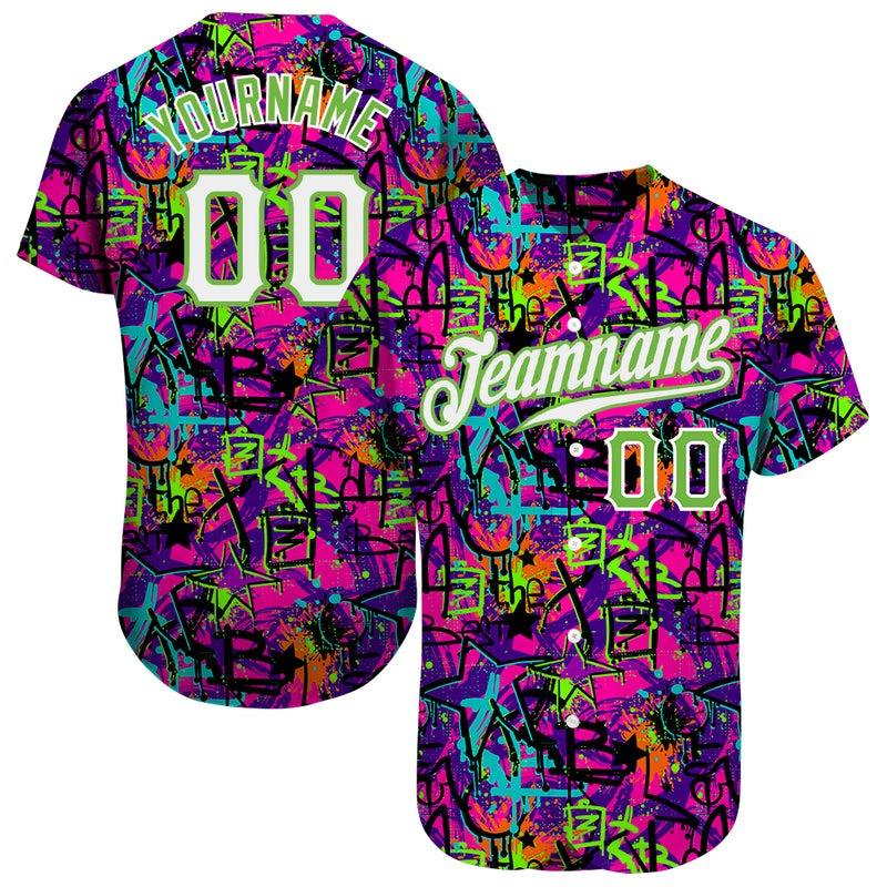 เสื้อเบสบอลแท้3D สีขาวนีออนสีเขียวลายกราฟฟิตีตามสั่ง