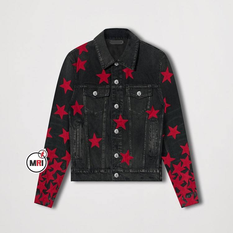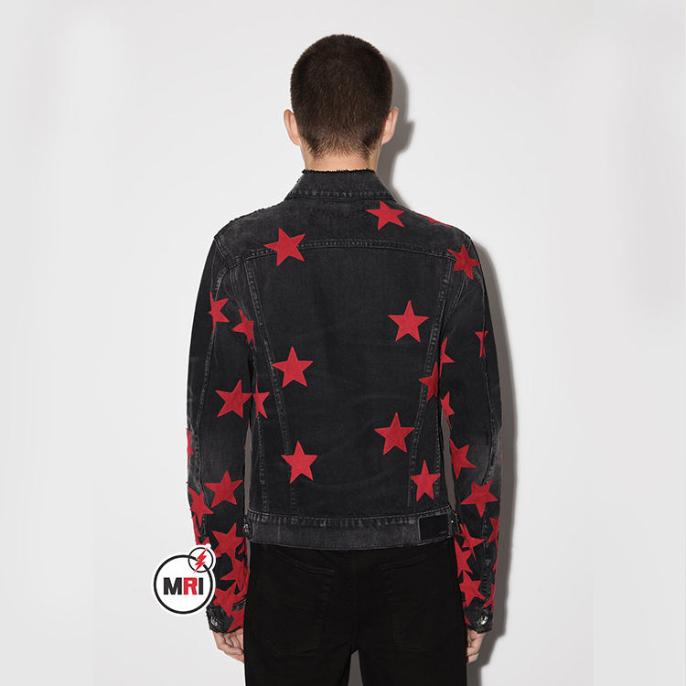 แจ็คเก็ตฮิปฮอปวินเทจสำหรับทุกเพศเสื้อยีนส์พิมพ์ลายดาวกราฟฟิตี้พิมพ์ลายโลโก้ได้ตามต้องการสำหรับฤดูหนาว