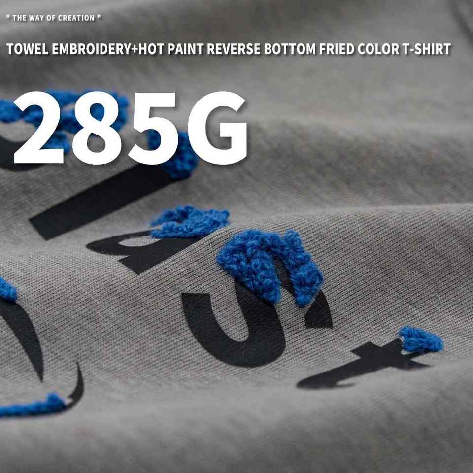 เสื้อยืดผู้ชายโอเวอร์ไซส์ขนาดใหญ่พิเศษผ้าคอตตอนถักลาย100% ก. วินเทจ285ก. กราฟิกซักได้ตามต้องการ