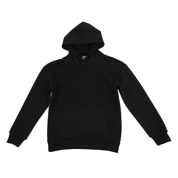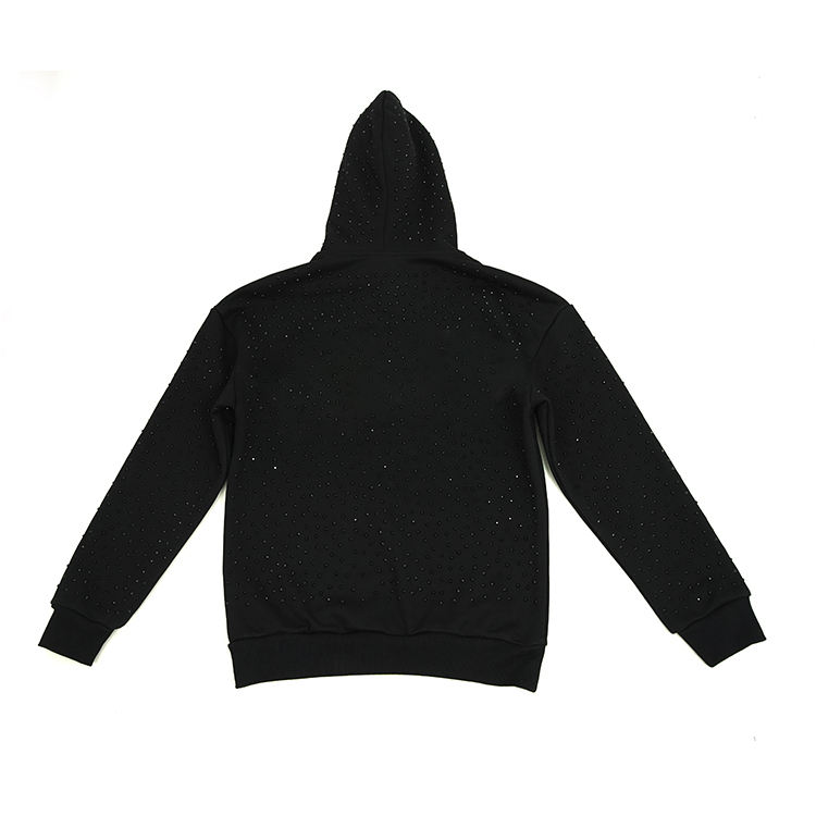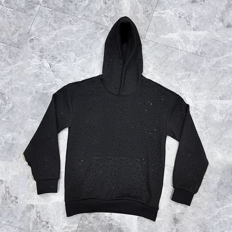 เสื้อฮู้ดถักลายกราฟิกสีดำประดับคริสตัลสำหรับผู้ชาย สไตล์สตรีทแวร์ ผ้าฝ้าย 100% น้ำหนักมาก 500 กรัม ทรงโอเวอร์ไซส์ ลายจุด สไตล์ Y2K