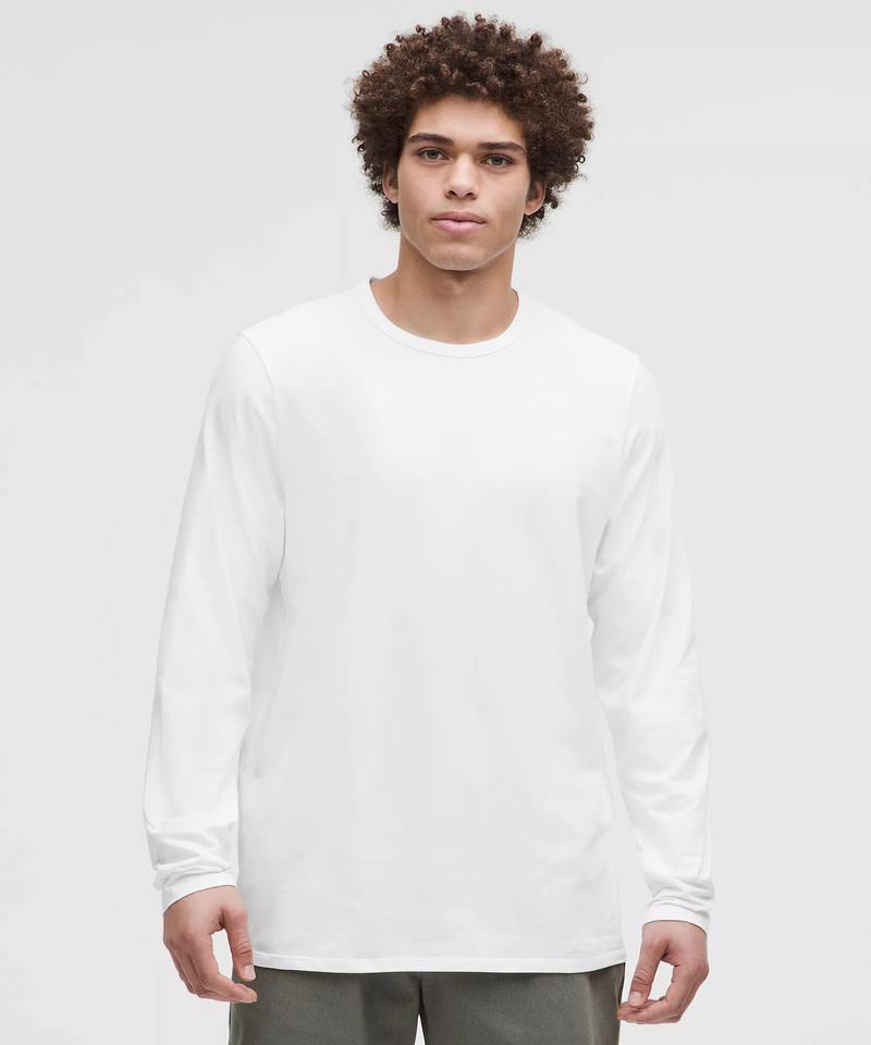 เสื้อยืดแขนยาวพิมพ์ลายกราฟิกสำหรับผู้ชายเสื้อยืดแขนยาวสองชั้นผ้าฝ้ายโอเวอร์ไซส์