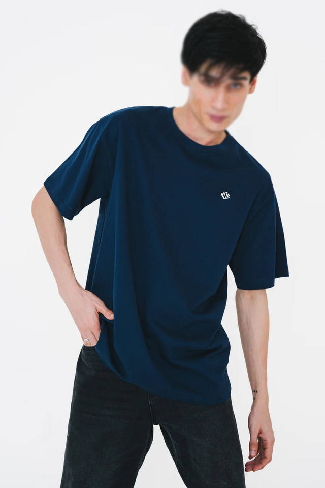 เสื้อยืดผู้ชายทรงโอเวอร์ไซส์ สีกรมท่า ลายกราฟิกแบบกำหนดเอง ผ้าเจอร์ซีย์คอตตอน 100% แขนสั้น ระบายอากาศได้ดี เสื้อยืดเรียบง่าย สำหรับใส่กลางแจ้ง