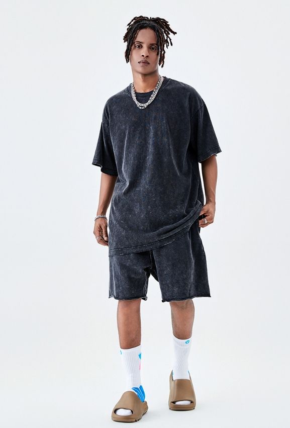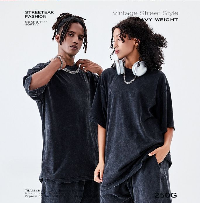 Custom Graphic Men's T-Shirts Vintage Distressed Acid Wash Style 240 Grams Silk Screen Printing Solid Blank Oversized Tees