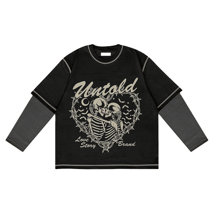 เสื้อยืดแขนยาวสองชั้นพิมพ์ลายกราฟิกที่กำหนดเองเสื้อยืดผ้าฝ้าย100% GSM 300
