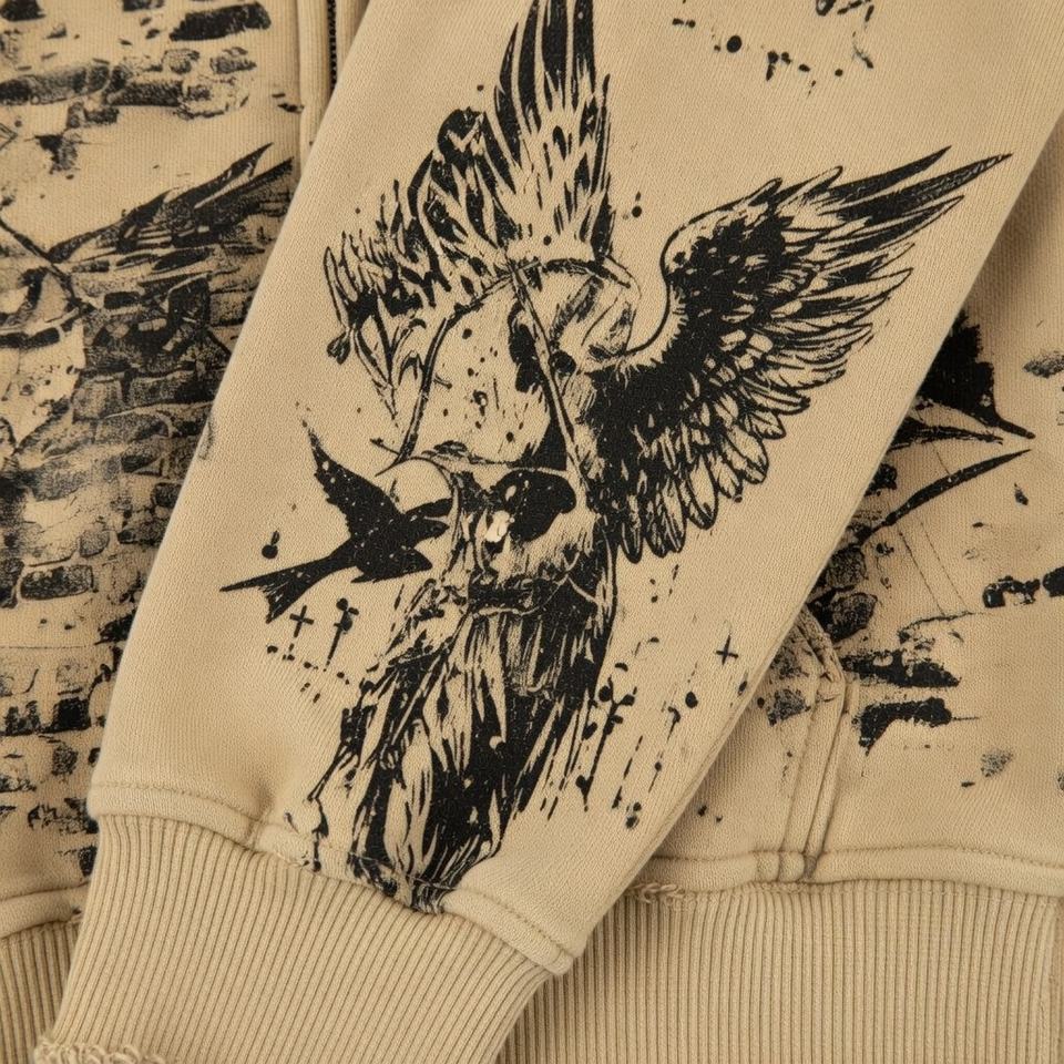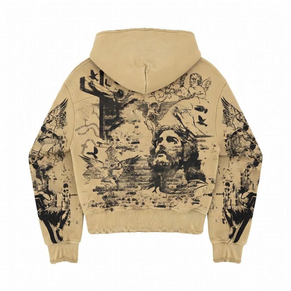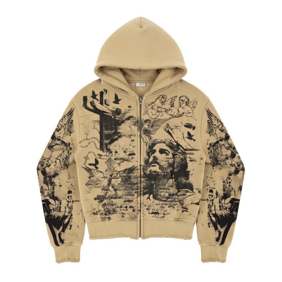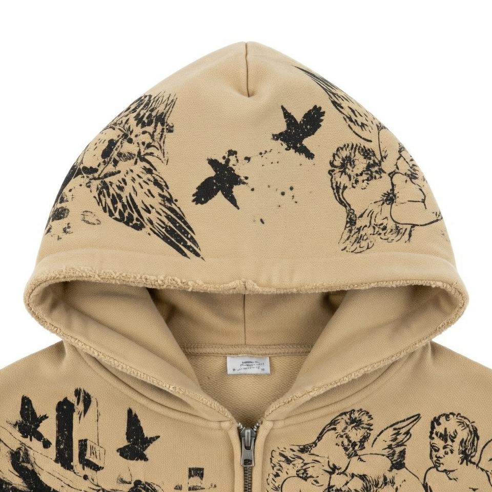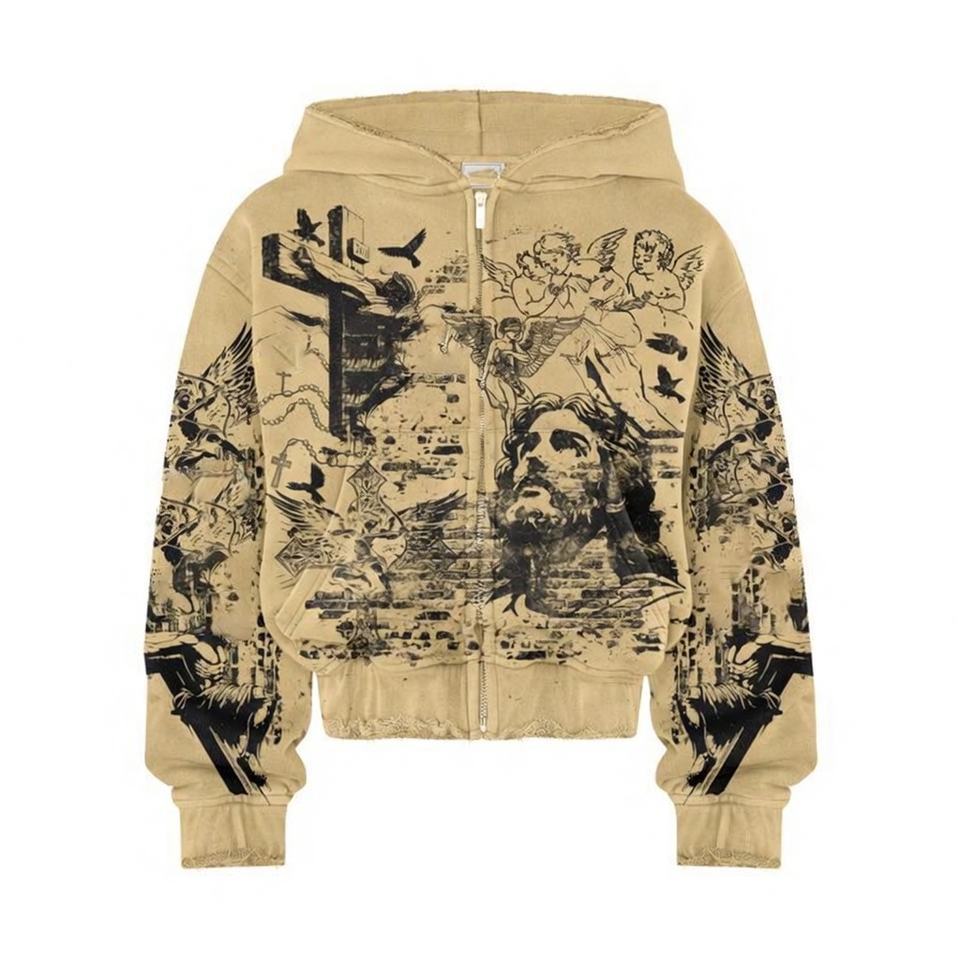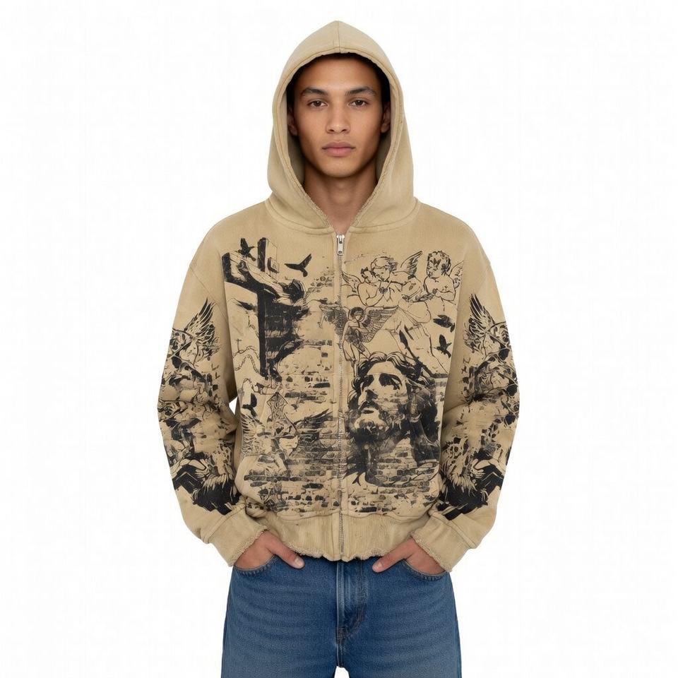 เสื้อฮู้ดซิปพิมพ์ลายกราฟิกสไตล์วินเทจสำหรับฤดูหนาว ผ้าฟลีซคอตตอน 100% หนานุ่ม ทรงโอเวอร์ไซส์ สไตล์สตรีทแวร์สำหรับผู้ชาย