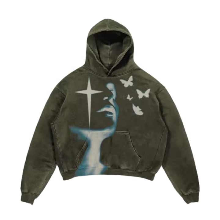 เสื้อฮู้ดสกรีนลายกราฟิกปักเอง ผ้าฟลีซคอตตอน 100% ล้างแบบวินเทจ สไตล์สตรีทแวร์ สำหรับฤดูใบไม้ร่วง ซื้อได้ในราคาถูก MOQ ต่ำ