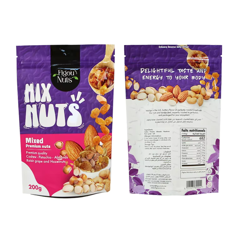 บรรจุภัณฑ์ถุงตั้งอลูมิเนียมฟอยล์สำหรับเม็ดมะม่วงหิมพานต์