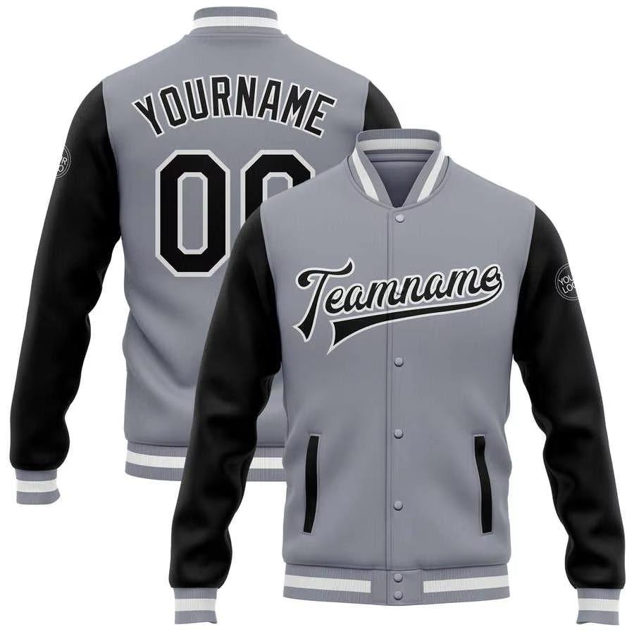 เสื้อแจ็คเก็ตวาร์ซิตี้สีเทาแบบกำหนดเอง เสื้อเบสบอลแบบมีตัวอักษร ผลิตเสื้อผ้า กระดุม เสื้อแจ็คเก็ตฤดูหนาวสำหรับผู้ชาย