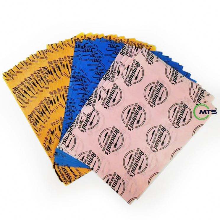กระดาษไขเคลือบกันไขมันแบบด้านเดียว ปลอดภัยสำหรับอาหาร ขนาดปรับแต่งได้ พร้อมพิมพ์โลโก้ สำหรับห่อคุกกี้และนม