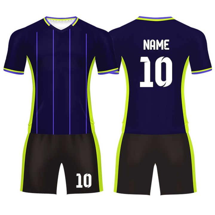 ชุดฟุตบอลแบบกำหนดเองพร้อมตัวอักษรกรีก สำหรับชมรมนักเรียน นักศึกษา มหาวิทยาลัย ทีมกีฬา ผลิตจากโพลีเอสเตอร์ 100% พิมพ์ลายดิจิทัล