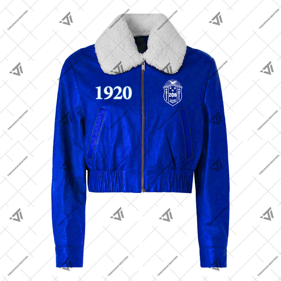แจ็กเก็ตหนังปักลายกรีก Zeta phi Beta แจ็คเก็ตขี่มอเตอร์ไซค์มีปกขนสัตว์ตามสั่ง