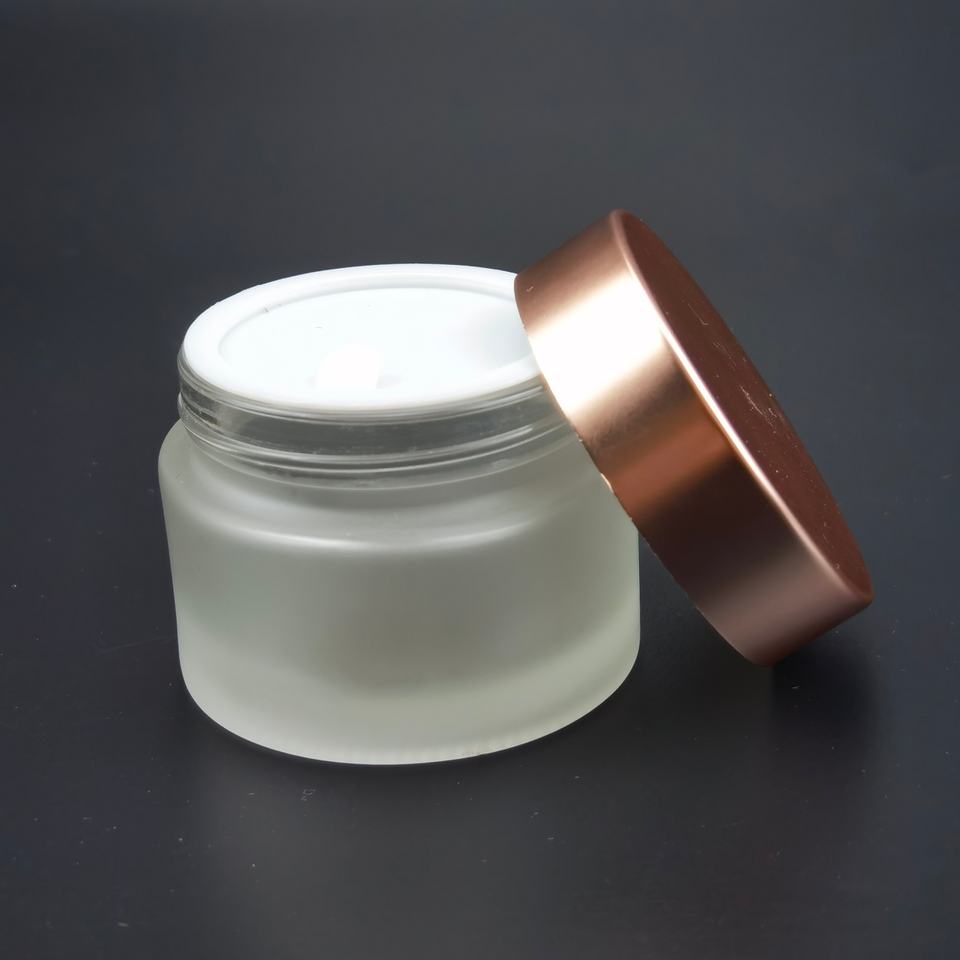 ขวดแก้วใสสีเขียวฟ้าแบบกำหนดเอง ขวดบรรจุภัณฑ์ครีมบำรุงผิวหน้าและรอบดวงตา ฝาสีเงินสีทอง ขนาด 10 มล. 15 มล. 20 มล. 30 มล. 50 มล. กระป๋อง