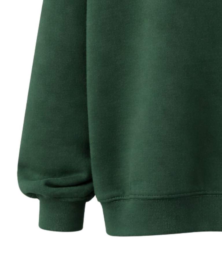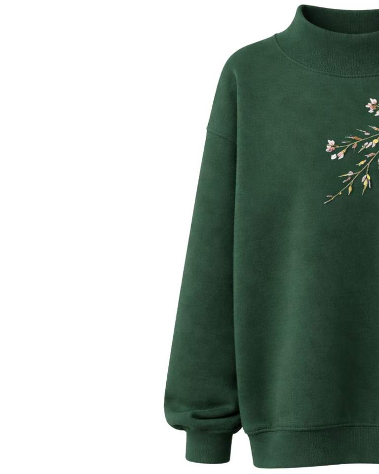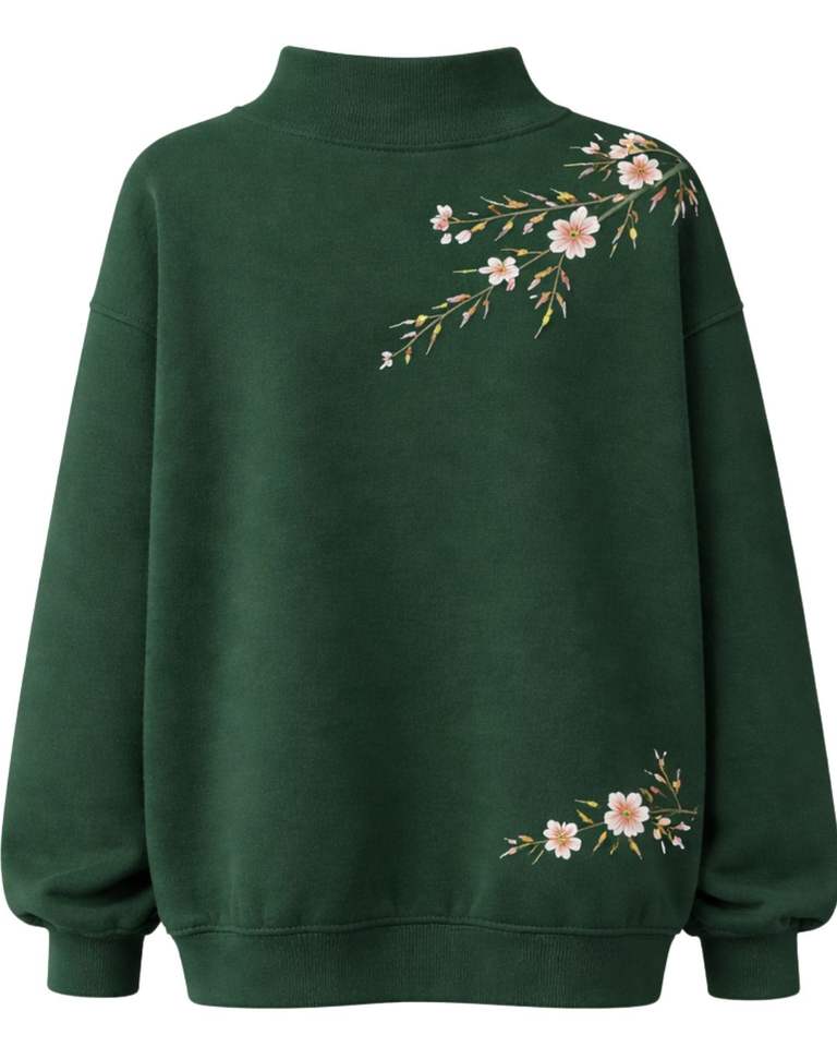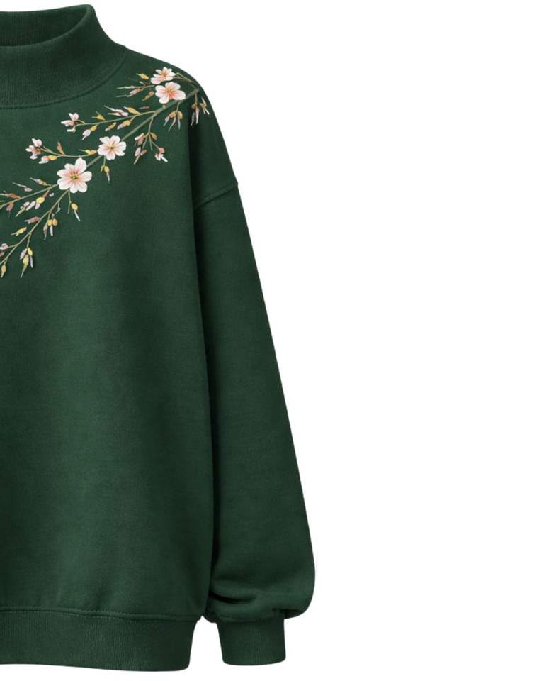เสื้อสเวตเชิ้ตผ้าฟลีซสีเขียวแบบโอเวอร์ไซส์สำหรับผู้หญิง คอตั้ง ปักลายดอกไม้ สวมใส่สบาย อุ่นสบาย เหมาะสำหรับฤดูหนาว สไตล์สตรีทแวร์ ทรงหลวม