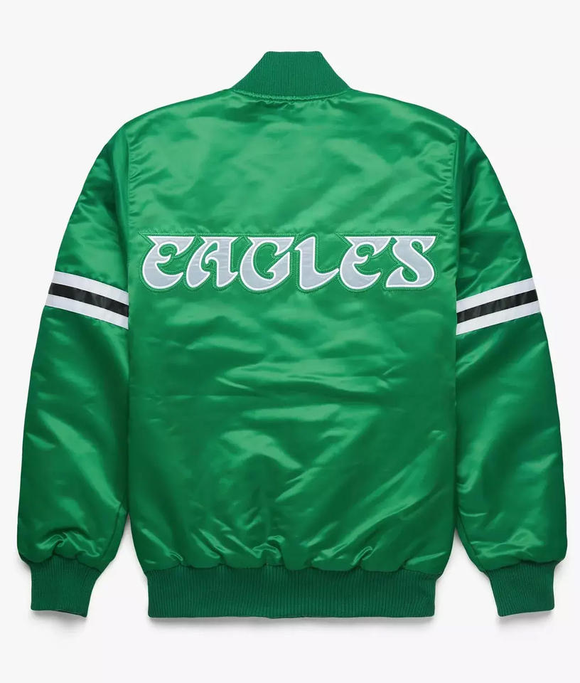 เสื้อแจ็คเก็ตวาร์ซิตี้ผ้าซาตินสีเขียวแบบกำหนดเองสำหรับผู้ชาย แจ็คเก็ตบอมเบอร์แขนลายทางสีขาว ขายส่งชุดยูนิฟอร์มเบสบอลแบบ Letterman ชุดกีฬา