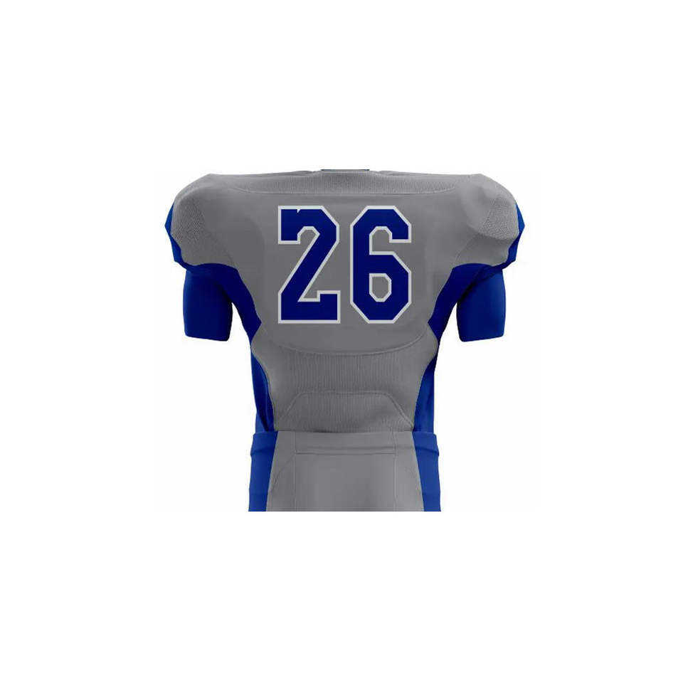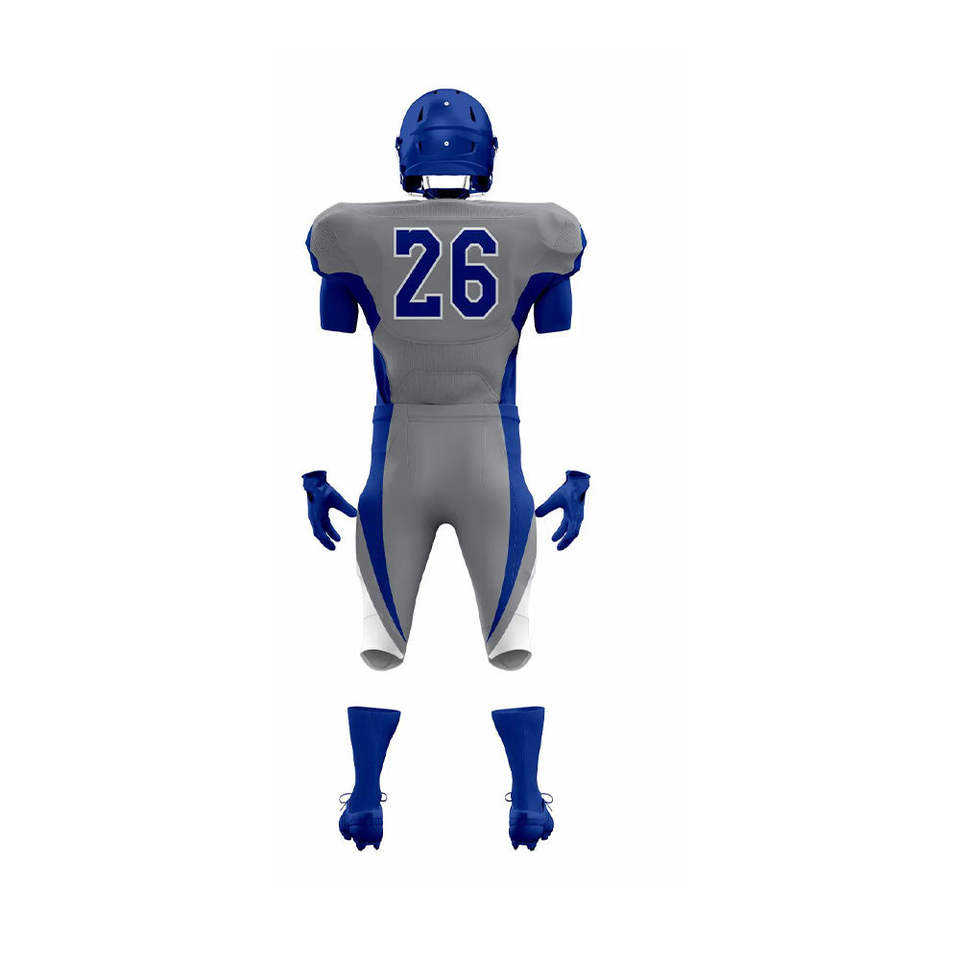 ชุดยูนิฟอร์มอเมริกันฟุตบอลสีเทาและสีน้ำเงินรอยัลแบบกำหนดเอง ปี 2026 เสื้อแข่งปี 2025 ชุดทีมแบบซับลิเมชั่นเต็มตัว ชุดกีฬาสำหรับมืออาชีพ