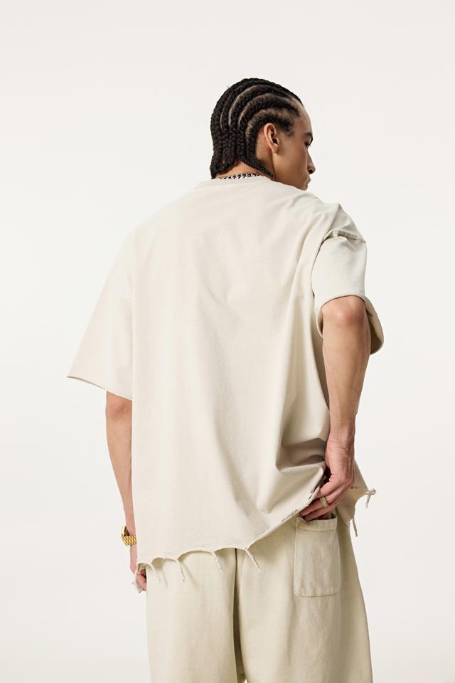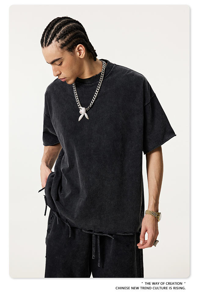 เสื้อยืดฮิปฮอปผู้ชายผ้าฝ้าย 310 กรัม รุ่น Custom Grind The Edge ทรงโอเวอร์ไซส์ ลายบาติก ล้างสีแบบแอซิดวอช พร้อมลายกราฟิกแบบกำหนดเองสำหรับผู้ชาย
