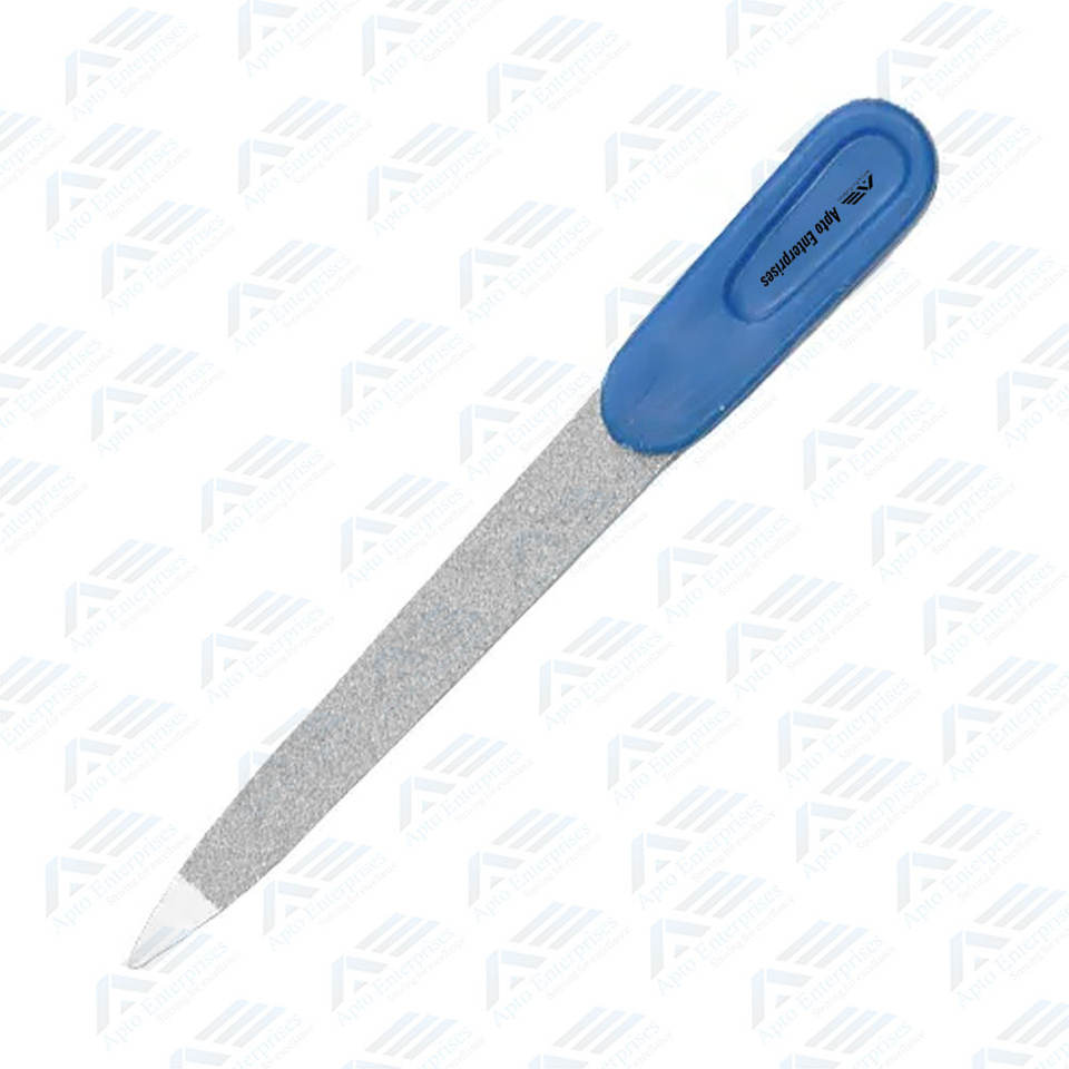 ตะไบเล็บสแตนเลสสตีลคุณภาพสูงพร้อมกริ๊ปจับพลาสติกสำหรับร้านเสริมสวยและดูแลเล็บส่วนตัว