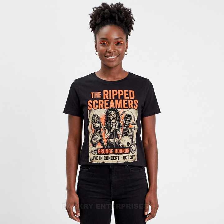 เสื้อยืดวงดนตรีกรันจ์สยองขวัญแบบกำหนดเองสำหรับผู้หญิง เสื้อยืดลายกราฟิก The Ripped Screamers สไตล์พังก์ร็อก เสื้อยืดผ้าฝ้าย เสื้อผ้าที่ได้รับแรงบันดาลใจจากดนตรี