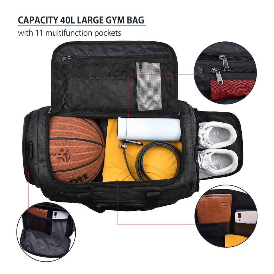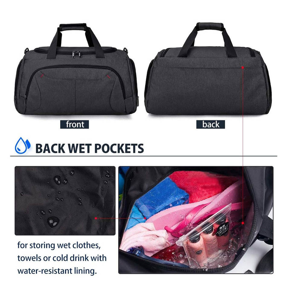 กระเป๋าเดินทางแบบพกพาสำหรับออกกำลังกาย ผลิตจากโพลีเอสเตอร์บุคาร์บอน พร้อมซิปแบบเรียบง่าย พับเก็บได้ และป้องกันกลิ่น สำหรับการเดินทางและเล่นกีฬา