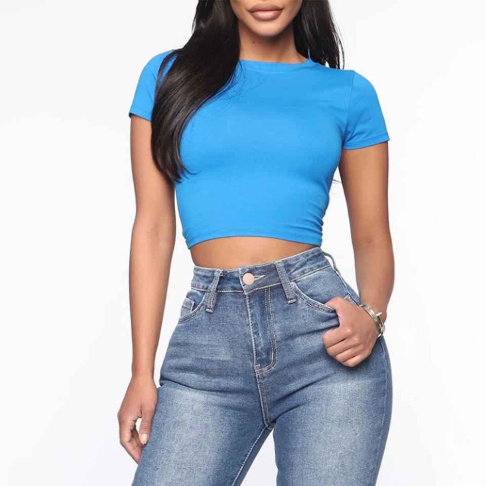 เสื้อยืดคอกลมแขนสั้นรัดรูปสำหรับไปยิมเสื้อยืดสตรีทสุดเซ็กซี่สำหรับผู้หญิงเสื้อครอปสำหรับปาร์ตี้คลับฤดูร้อนออกแบบได้ตามต้องการ