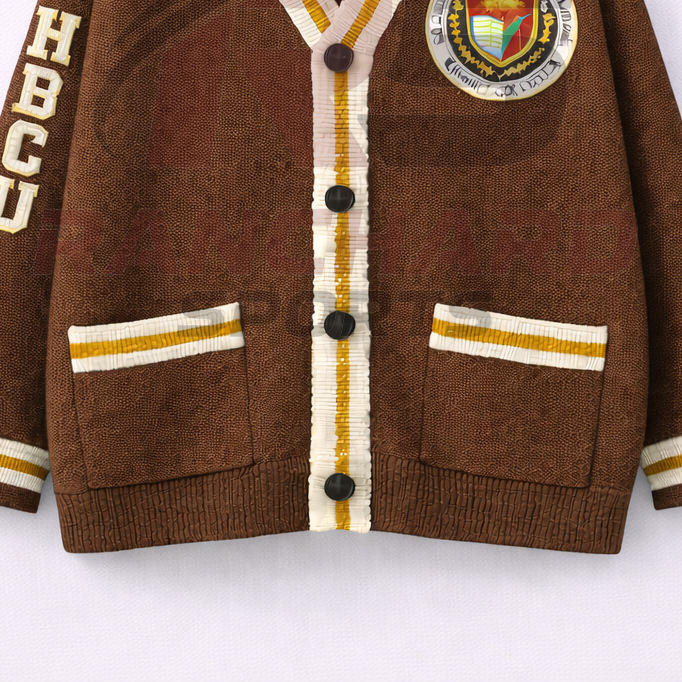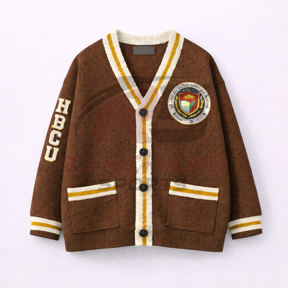 เสื้อคาร์ดิแกนแบบมีปกสำหรับชมรมนักเรียน HBCU แบบสั่งทำพิเศษ | เสื้อสเวตเตอร์ถักแบบติดกระดุมด้านหน้าไม่มีแขน | เสื้อผ้าไฮสตรีทที่เป็นมิตรกับสิ่งแวดล้อม ผลิตจากผ้าฝ้าย 100%