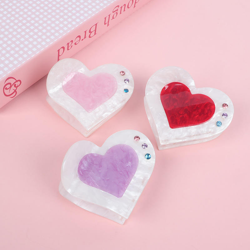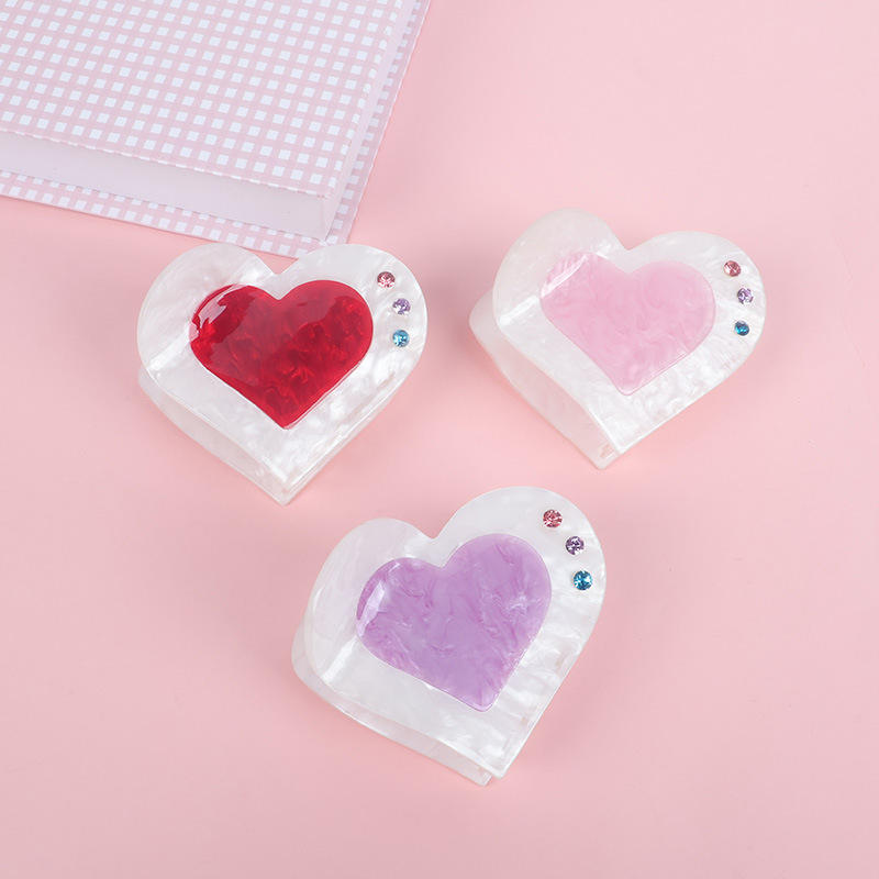 กิ๊บติดผมรูปหัวใจประดับคริสตัลและเพชรเทียมสีแดงแบบเรียบง่าย ทำจากอะคริลิกอะซิเตท