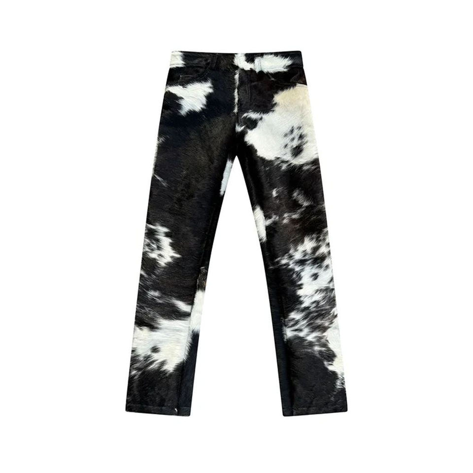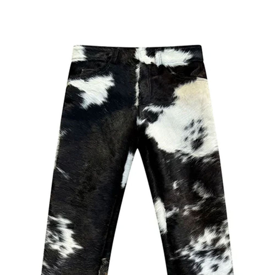 กางเกงหนังแท้ขนวัวธรรมชาติ สไตล์สตรีทแวร์ ทรงเวสเทิร์น ทรงเข้ารูป คุณภาพสูง ผลิตด้วยมือจากปากีสถาน