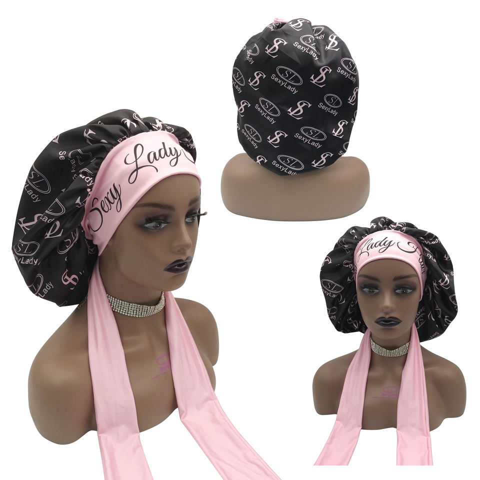 Custom Hair Silk Scarf Large Long Bonnet with Tie and Band Designer Scotch Bonnet Peppers Vendors