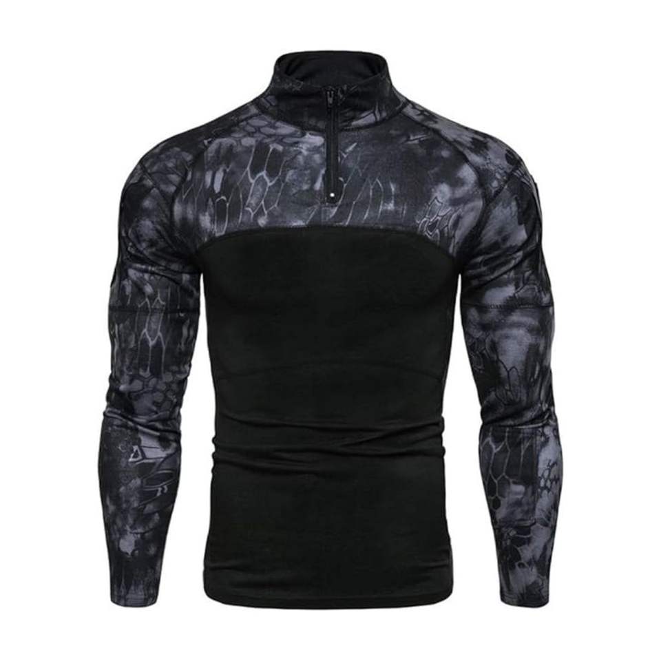 ชุดเครื่องแบบยุทธวิธีลายพรางมีซิปครึ่งตัวเสื้อเชิ้ตแขนยาวน้ำหนักเบาผ้า ripstop ผ้าโพลีเอสเตอร์คุณสมบัติกันน้ำ
