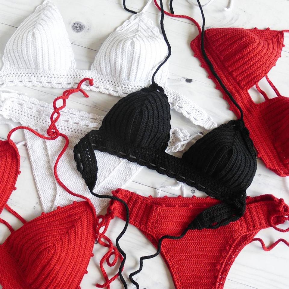 ชุดบิกินี่ถักโครเชต์ทำมือสำหรับผู้หญิง ชุดว่ายน้ำสองชิ้นน่ารักเซ็กซี่สำหรับสาวๆ ชุดชายหาดแบบผูกเชือกประดับคริสตัลพู่ห้อย ผลิตโดยตรงจากโรงงาน