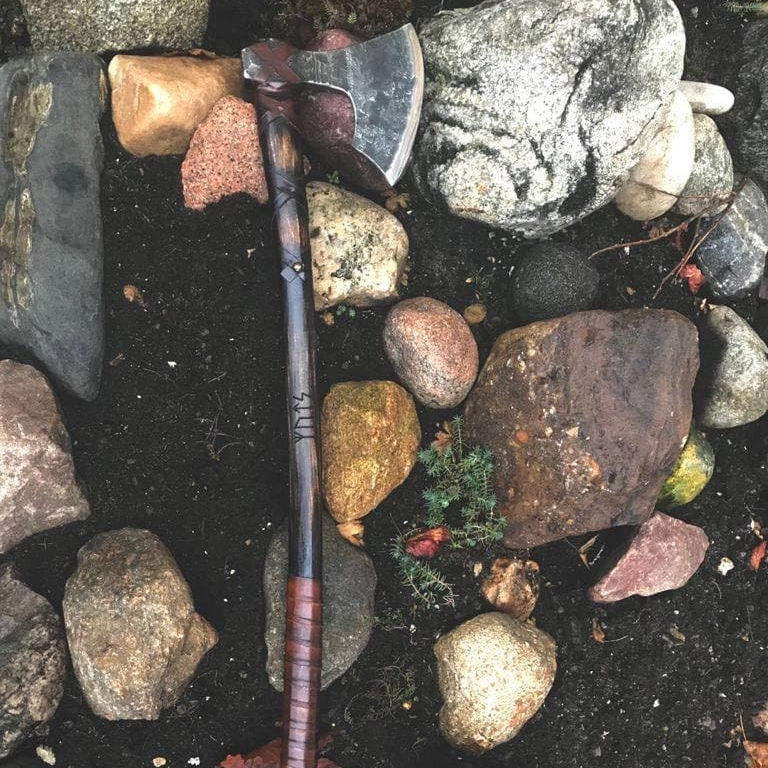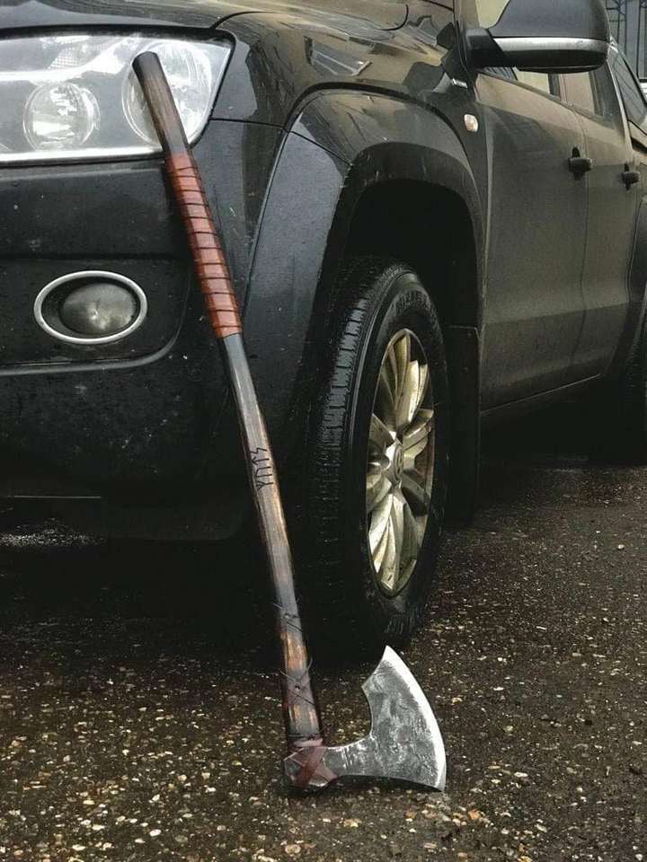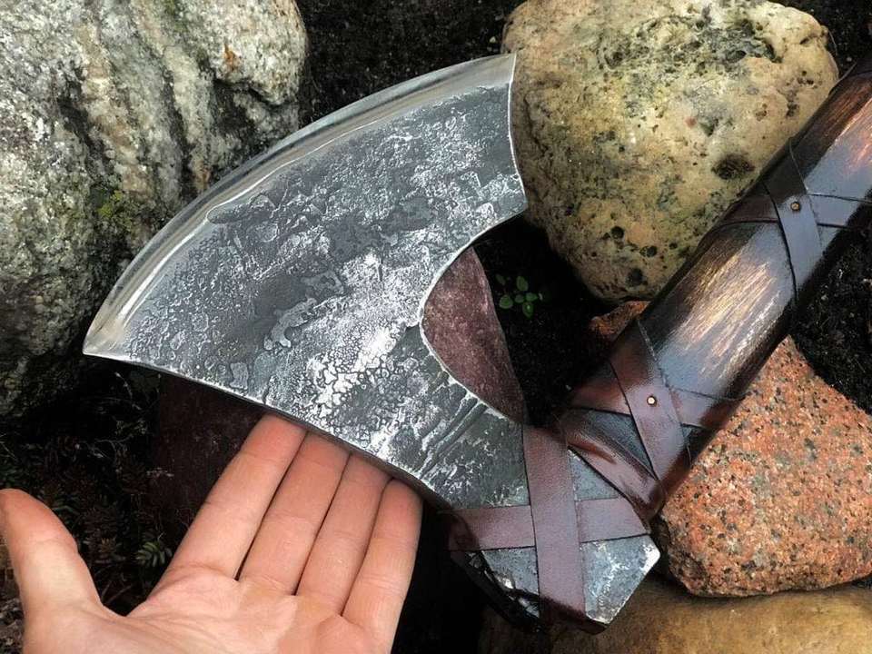 ขวานไวกิ้งทำมือแบบอุตสาหกรรม ใบมีดแบน ทำจากเหล็กกล้าคาร์บอนสูง คมตัด 5 นิ้ว ด้ามไม้แอช 17 นิ้ว