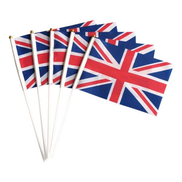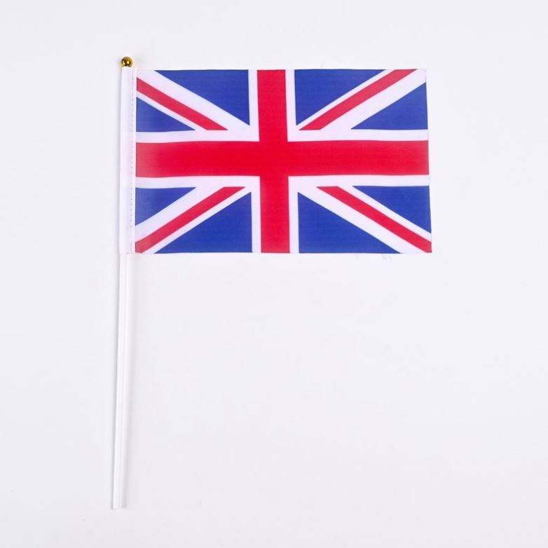 Custom Hand Held Flag 10x15cm 14 X 21cm Plastic Pole Sport UK Britain Mini National Polyester Hand Flags for Fans