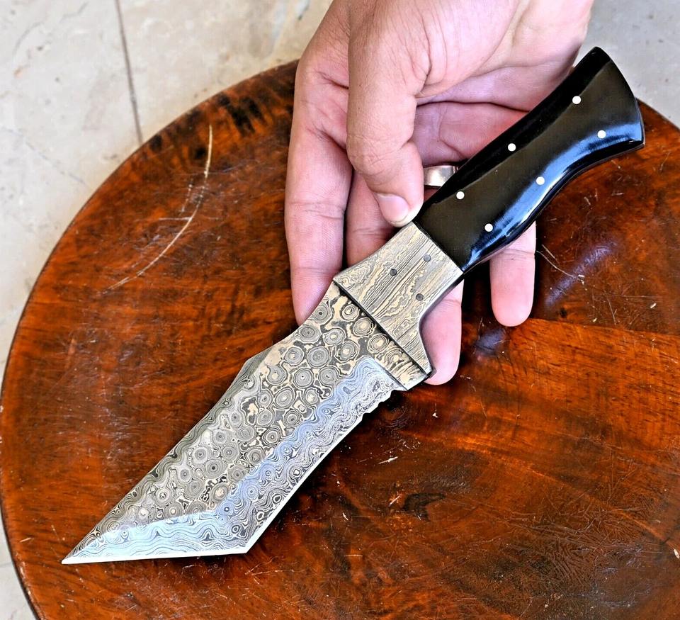 Custom Hand Made Tracker Hunting Knife Hand Forged Damascus Steel Blade Rosewood Handle Leather Cover OEM Support New Design