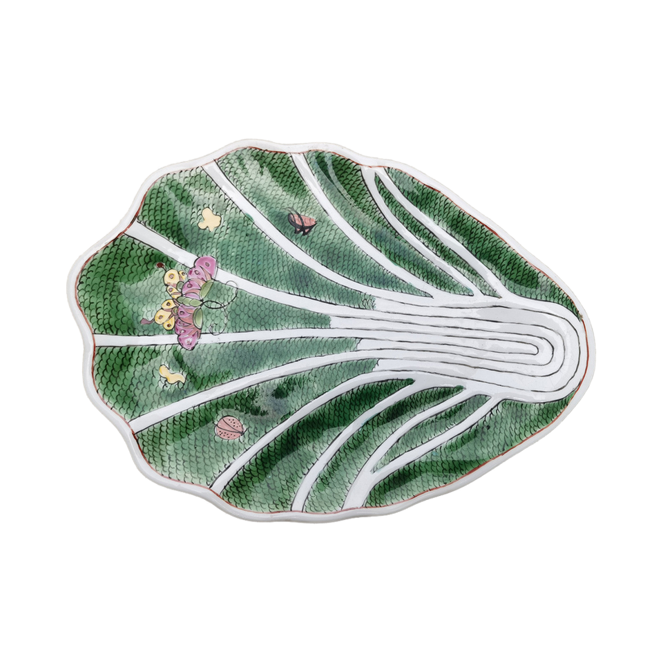 Custom Hand Painted Vintage Leaf Shape Bok Choy Large Serving Trays Fruit Snack Dishes Seasoning Bowl Ceramic Side Camping