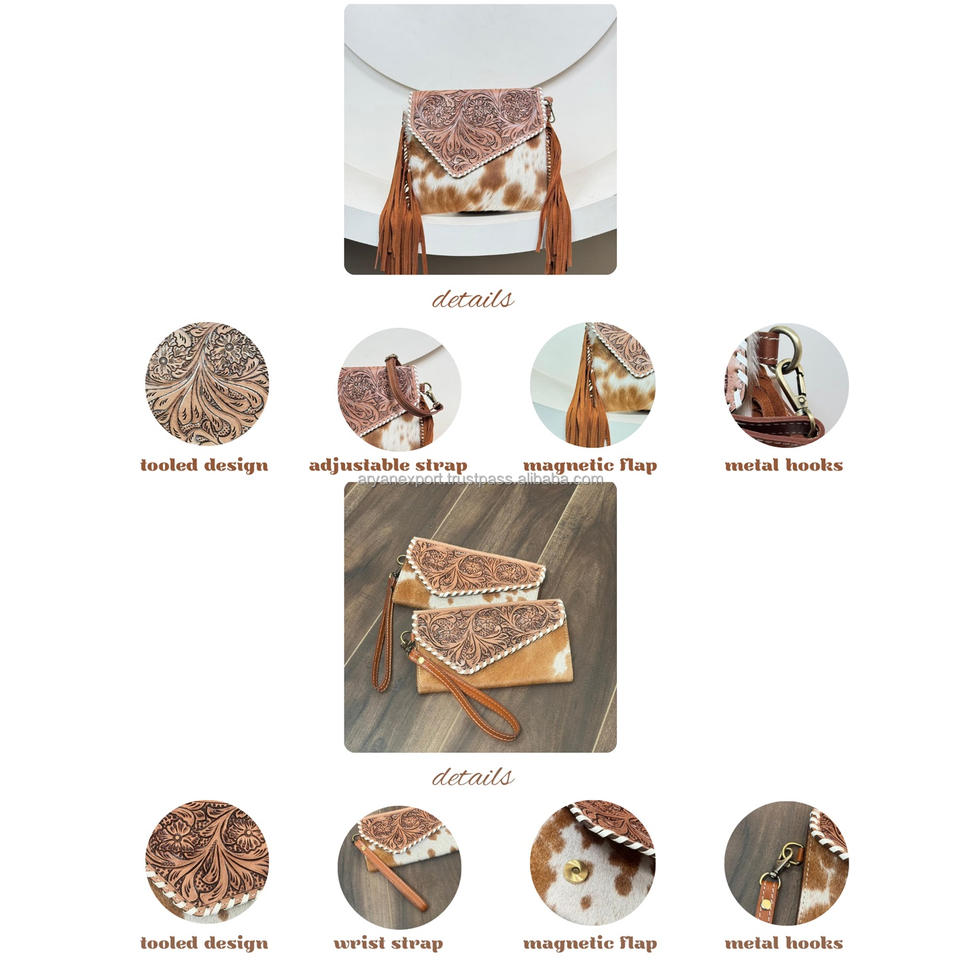ชื่อผลิตภัณฑ์:กระเป๋าถือหนังวัวมีพู่และชุดคลัทช์คอมโบ