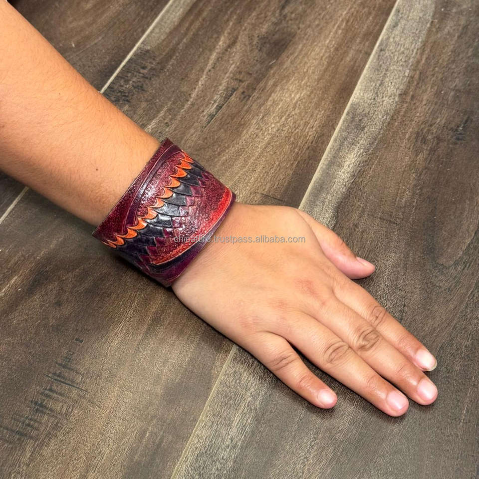 กำไลข้อมือหนังทำมือปรับได้สำหรับผู้ชายและผู้หญิงดีไซน์ลายมังกร