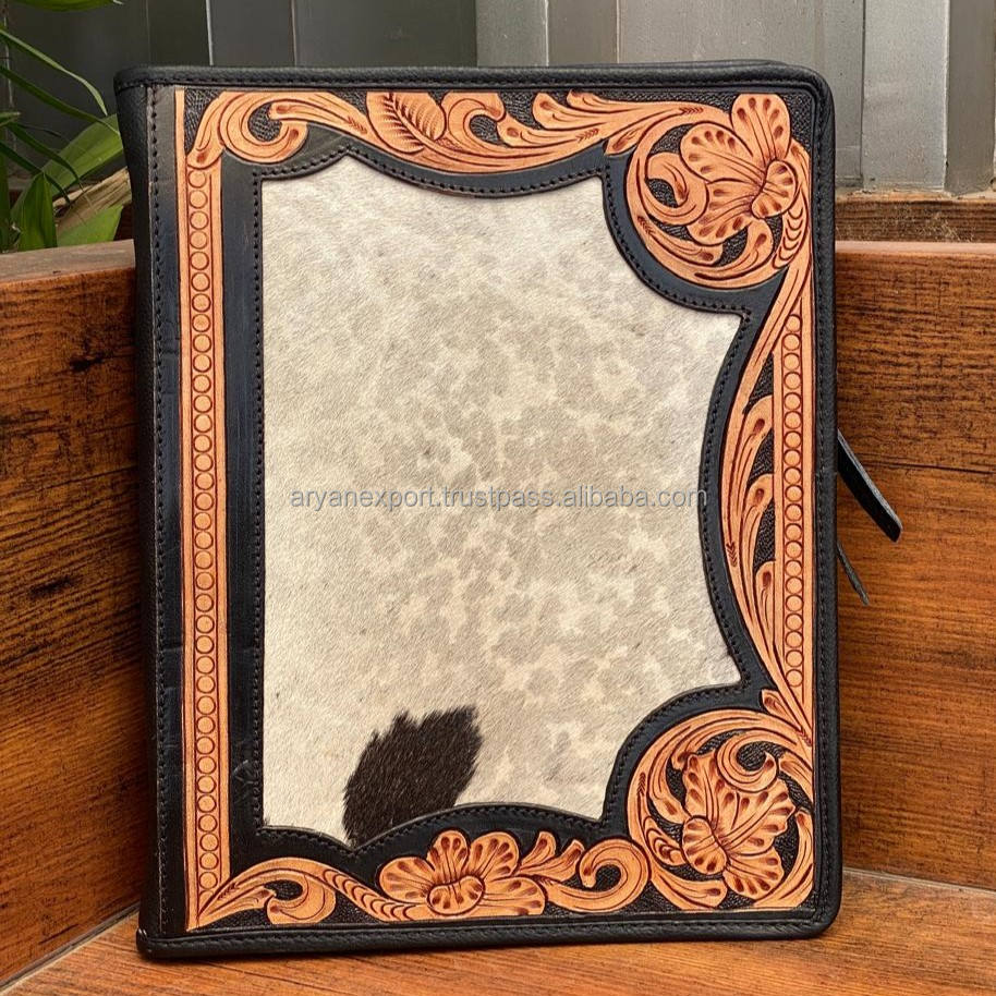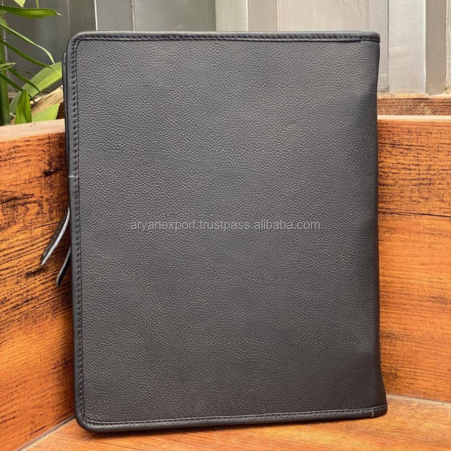 ที่ใส่เอกสารหนังวัวแท้สำหรับเดินทางพร้อมตัวหนีบแบบห่วงสำหรับ A4