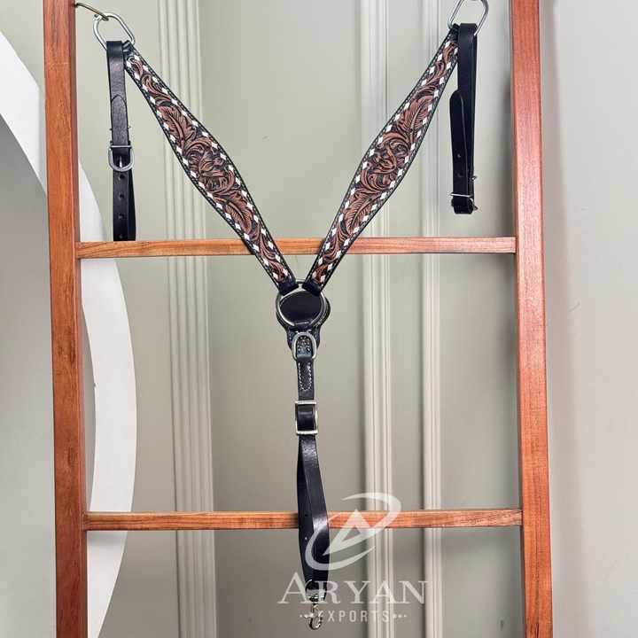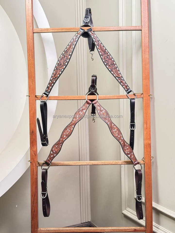 หนังหุ้มอกแบบตะวันตกแกะสลักด้วยมือลายดอกไม้สีแดงสำหรับกิจกรรมขี่โรดิโอและบาร์เรล