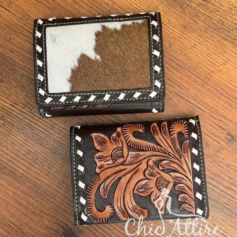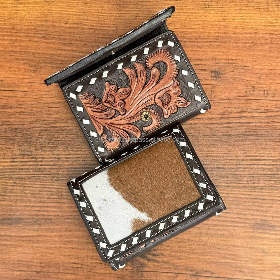 กระเป๋าสตางค์พับสามทบแบบสั้นสำหรับผู้ชายกระเป๋าใส่บัตรเครดิตหนังวัวแท้