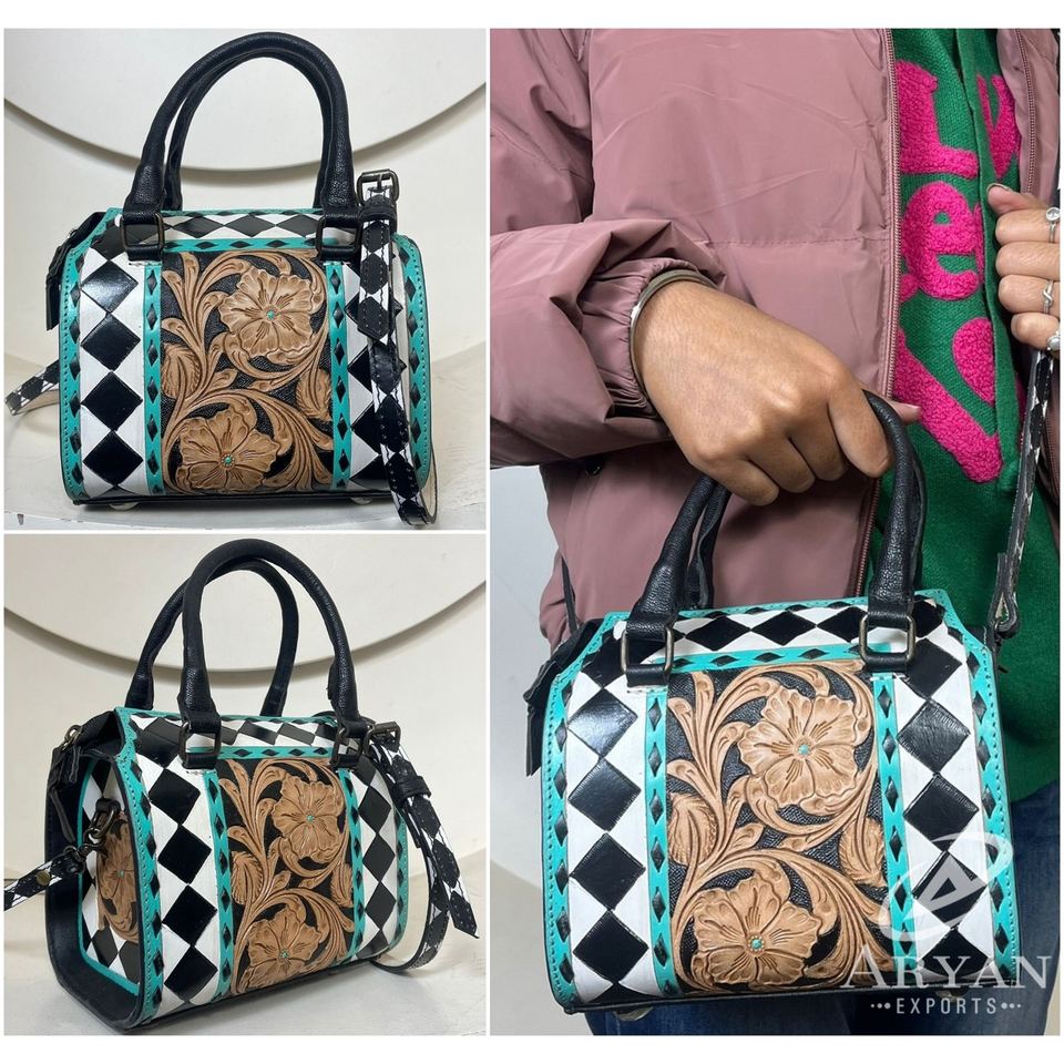 Product name:Hand Tooled Checkered Leather Small Speedy Bag