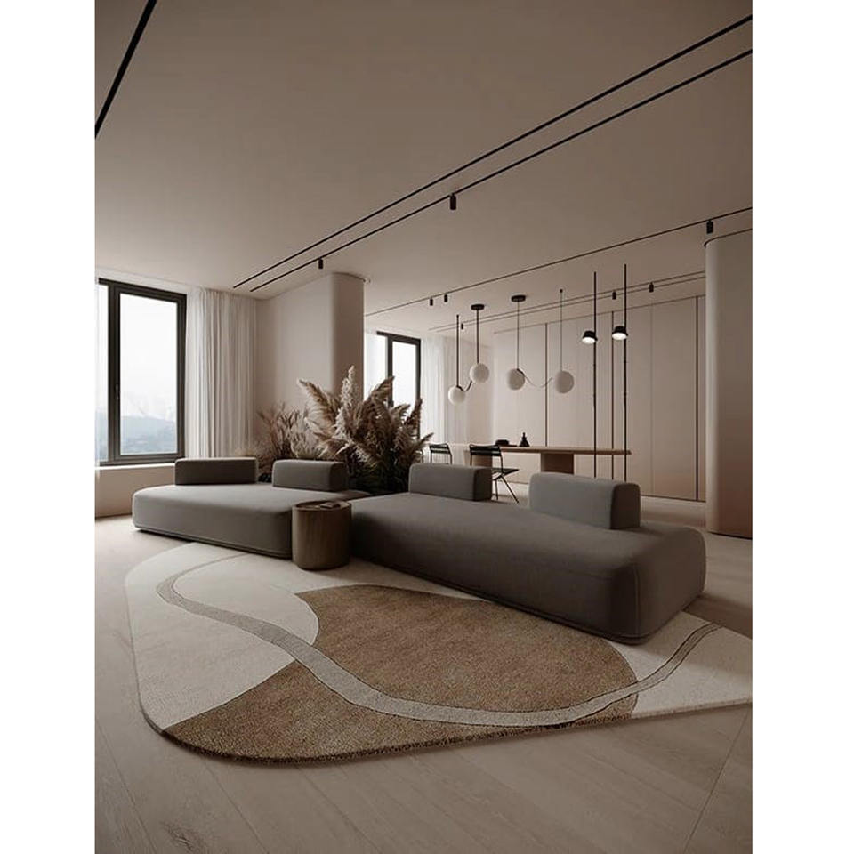 พรมขนสัตว์สีเบจแบบแอบสแตรกด้วยมือแบบโมเดิร์นพรมหรูหราสำหรับห้องนั่งเล่นและการตกแต่งภายในร่วมสมัยสำหรับบ้านหรือปิกนิก