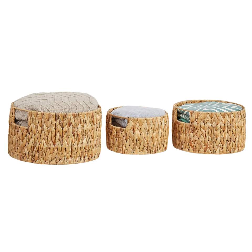 ตะกร้าผักตบชวาทรงกลมขนาดใหญ่ทอมือแบบกําหนดเองพร้อมที่จับตะกร้าเก็บหวายอเนกประสงค์ชุด 3 ตะกร้า