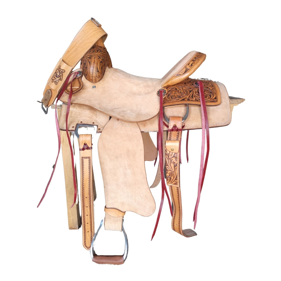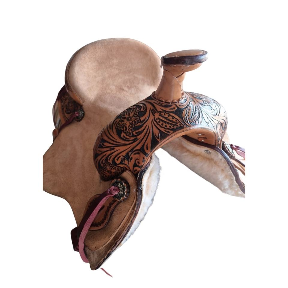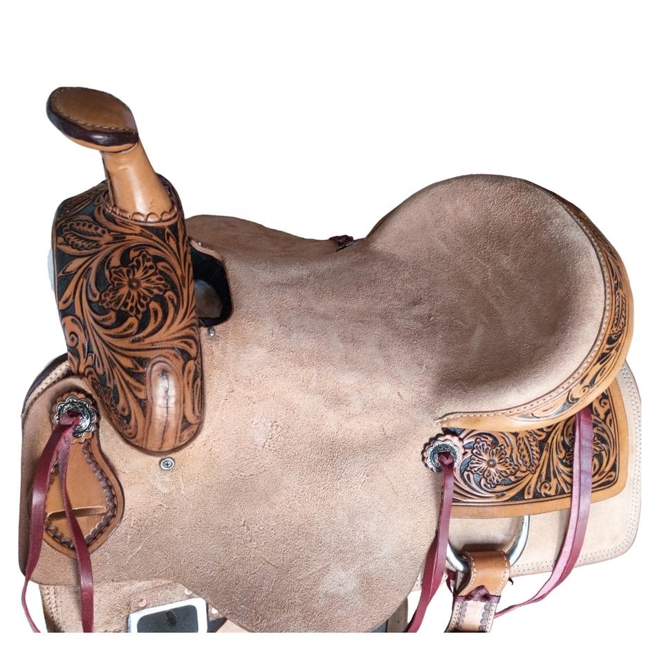 อานขี่ม้าแบบตะวันตกที่ทำด้วยมือของผู้ขับขี่สั่งทำ100% หนังควายที่นั่งลายดอกไม้แกะสลัก