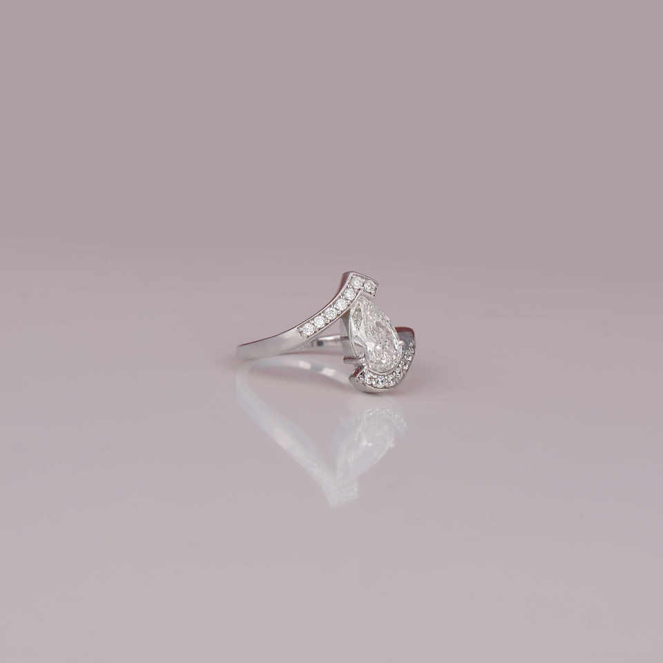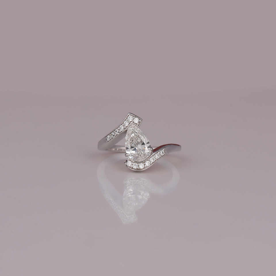 แหวนหมั้นทำด้วยมือ18KT สีขาวทองสไตล์อินเทรนด์แหวนหมั้นทำด้วยมือตัดลูกแพร์ทำด้วยมือมีเพชรใบรับรอง IGI
