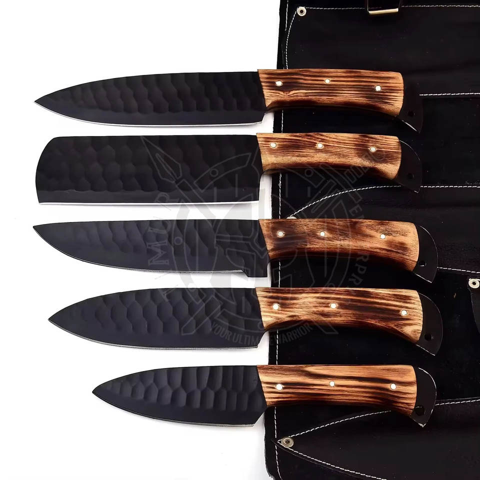 มีดทำครัวซันโตกุ5ชิ้นทำด้วยมือพร้อมด้ามจับไม้โรสวู้ดชุดมีดทำครัวสแตนเลสปลอดภัยงานตามสั่ง